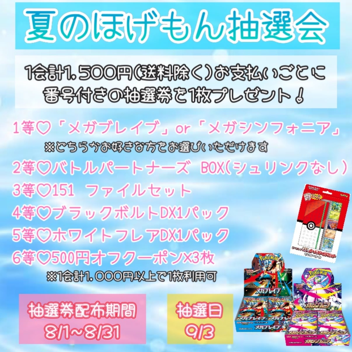 1会計1,500円(送料除く)お支払いごとに抽選券1枚配布❣️
